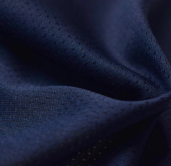 Tejido de punto microperforado tipo malla, elaborado con filamentos de poliéster que garantizan transpirabilidad, ligereza y comodidad. Su estructura abierta permite una excelente circulación del aire, evitando la acumulación de humedad y ofreciendo frescura durante la actividad física.
