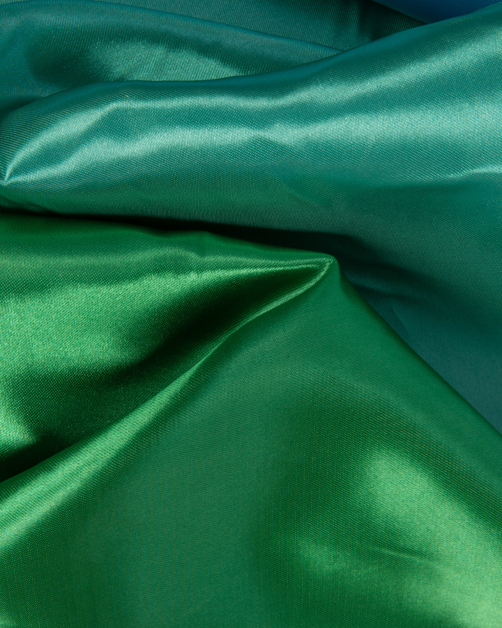 El Satín Licrado es un tejido plano tipo satén (4x1), elaborado con filamentos de poliéster texturados y sin texturar, combinados con un 5% de spandex. Esta mezcla le otorga brillo, suavidad y la elasticidad justa para adaptarse con comodidad al cuerpo, manteniendo al mismo tiempo una caída elegante y ligera. Su acabado teñido y blanqueado realza aún más su aspecto lujoso.