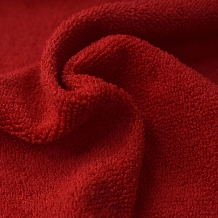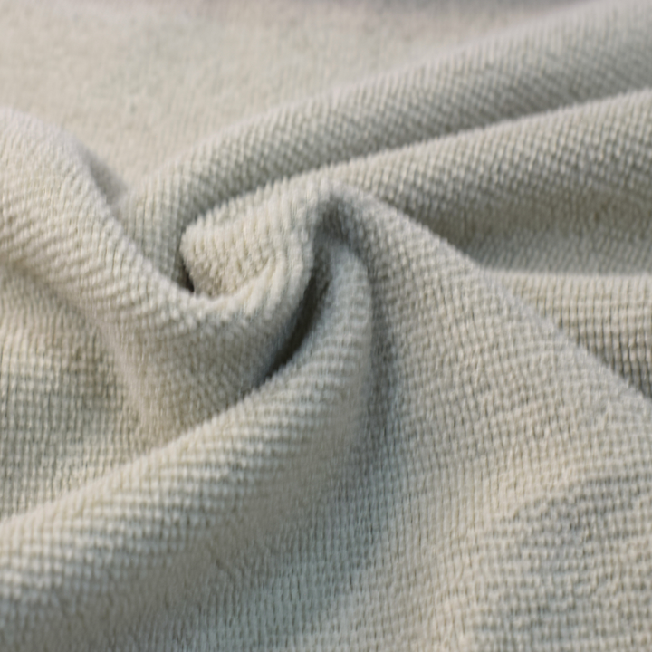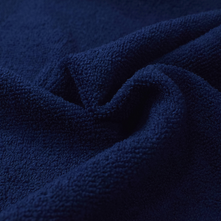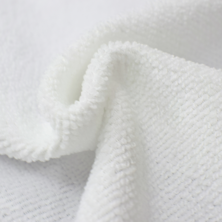 Tela tipo felpa doble cara, tejida en punto por urdimbre con pelo por una cara. Su composición en 100% fibras discontinuas de poliéster ofrece gran capacidad de absorción y suavidad al tacto. Disponible en tonos teñidos o blanqueados. Ideal para productos de doble secado gracias a su estructura de microfibra.